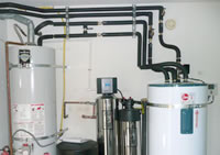 Solar hot water systems are made up of collectors, storage tanks, piping, controls, and in some cases, pumps. Active systems use pumps to circulate water through the system. Passive systems have no pumps or controls and rely on street pressure to provide flow through the solar panel. Collectors The most commonly used collector is the flat-plate collector. It is an insulated, weatherproofed box, made of metal, containing a dark absorber plate beneath a translucent cover (typically tempered, low-iron glass). Copper piping is used to make up the "waterways" or body of the collector. Contact us to learn which collector is best suited for your application. Tanks Most solar hot water systems require a well-insulated storage tank. Many systems use converted electric water heater tanks for storage or plumb the solar storage tank in series with a conventional water heater. Controls, Circulator A differential temperature controller monitors the temperatures at the solar collector outlet and at the storage tank. When the collectors are warmer than the tank, the control turns on a circulator which circulates water through the collectors and back to the water heater located in or adjacent to the storage tank.  |